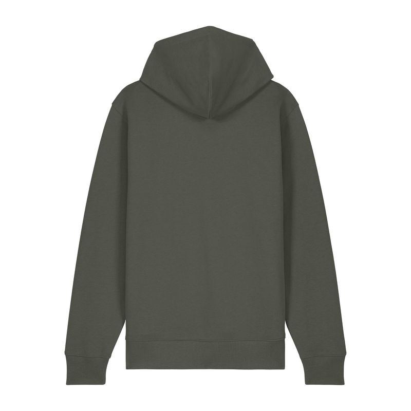 Stílusos, 350 g/m² súlyú, bolyhosított polár kapucnis pulóver modern szabásvonallal, teljes cipzárral és kenguruzsebekkel rendelkezik. 100% organikus pamutból készült.